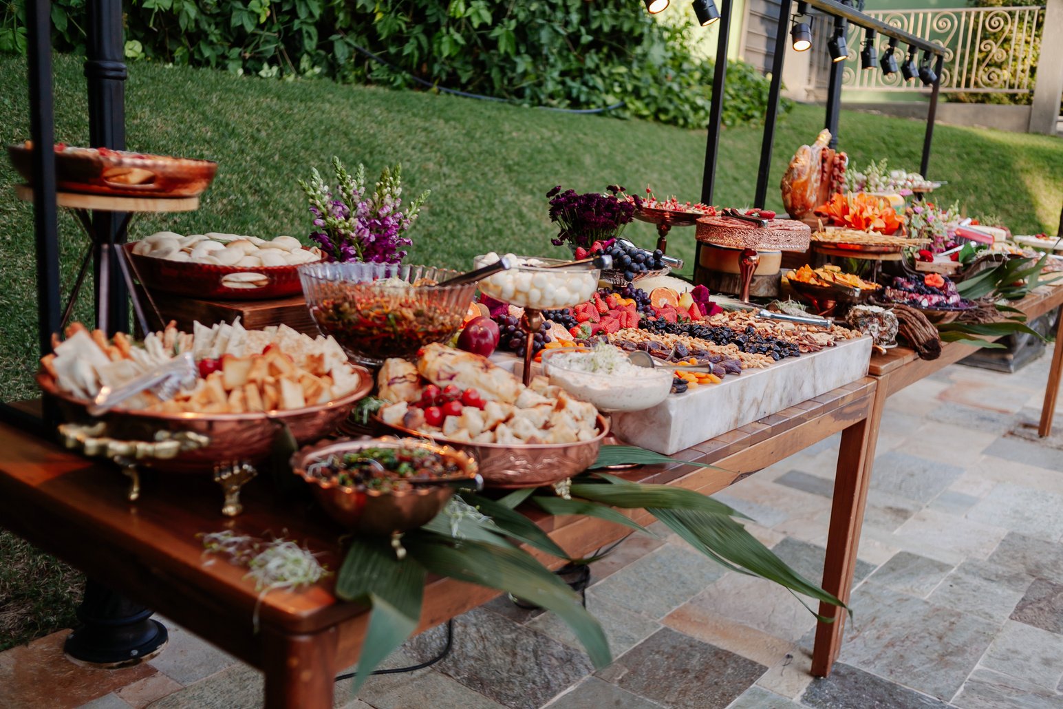 Buffet completo: Delicie-se com um buffet cuidadosamente preparado pelos nossos chefs com mesa com queijos exclusivos importados diretamente da Holanda e Suíça., com todos os utensílios em cobre e Prata Nobre para uma apresentação impecável.